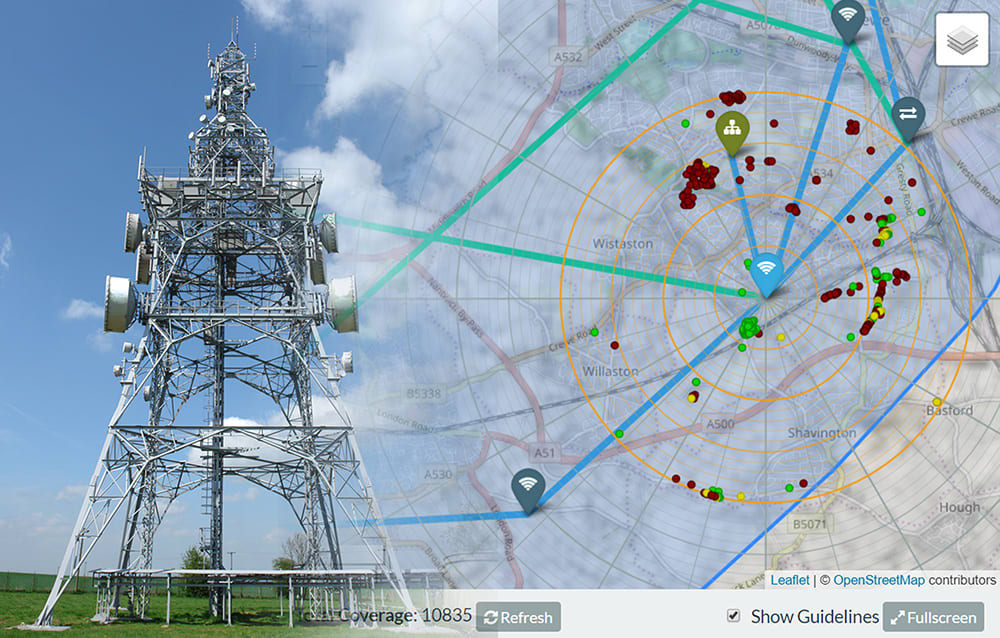 Site planning functionality within WIDSM allows assessment of backhaul from other sites and an understanding of which properties can be served and advanced modelling features allow testing of different locations and antenna heights. WISDM can also be used to find intermediate locations to bridge existing towers or customers.