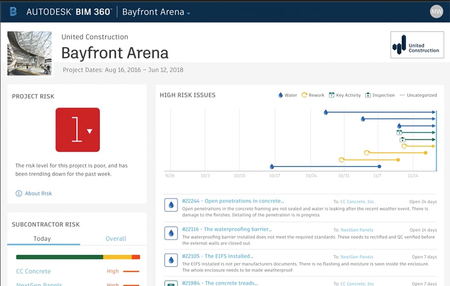 BIM360 IQ uses machine learning to predict and prioritise high-risk issues, project subcontractor risk, and keep superintendents productive. It’s the perfect assistant to a superintendent on a construction site who can consult with it about the top issues for each day and how they rank in terms of priority or severity.