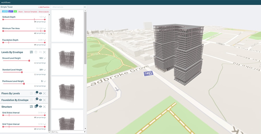 The tool is based on open data standards and enables users to create and upload different generative “functions” – essentially modules of building expertise – that quickly produce multiple options for specific problems. Functions from different users, or other third parties, can be combined to tackle more complex problems and develop a more rich and refined design.