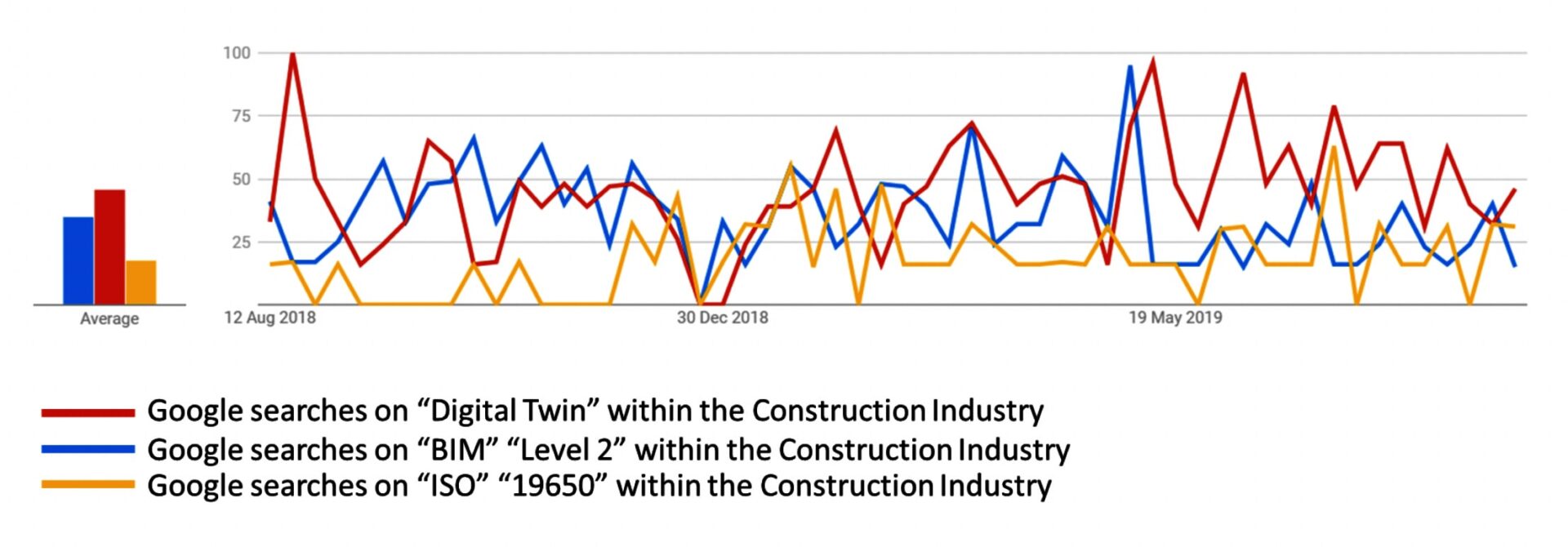 Google statistics showing industry interest growing for digital twin over foundation standards like 19650