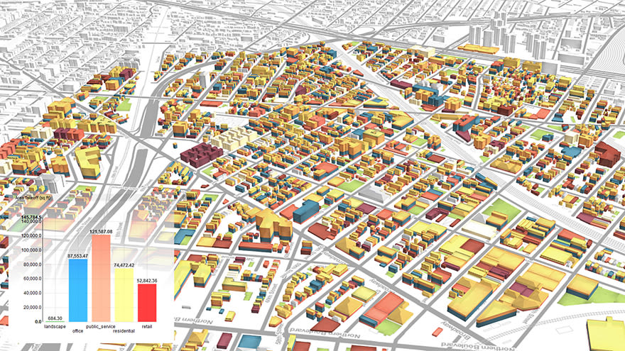 “When planning neighbourhoods or sites, for example an urban extension, it can aggregate all the information on land use, city codes, or population data, in an entire environment. It answers the question – what happens if you build here? What will the impact be?”
