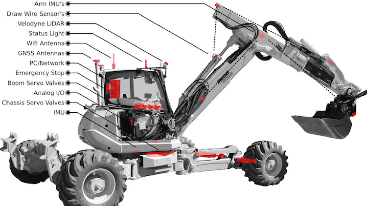 The Hydraulic Excavator for an Autonomous Purpose is fitted with an array of sensors.