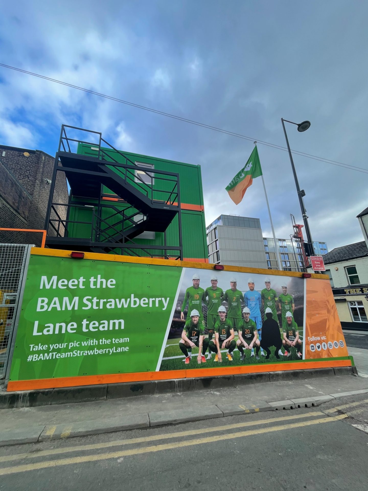 Craig Madge, a project manager for BAM, which is building a new headquarters building for housing association Home Group at One Strawberry Lane, has erected a giant image of his site team, complete with their roles, on the hoardings outside the multi-million-pound scheme.