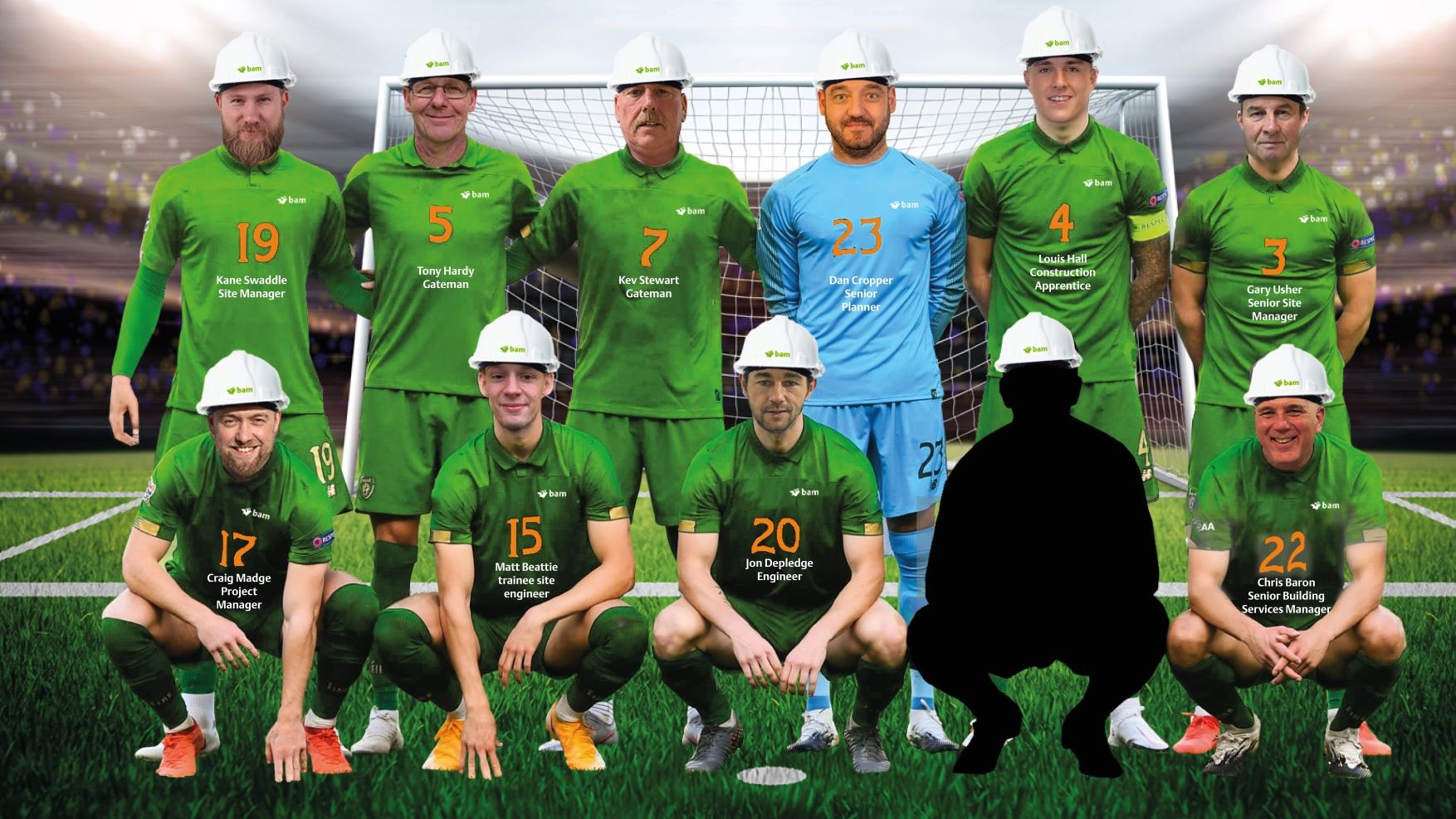 Madge is a Newcastle United fan but has used the company’s green and orange colours for the team kit, to avoid clashes with other fans. His team, which includes gatemen, site managers, engineers, building services managers, site managers and apprentices, supports several teams including Barnsley, Liverpool, Sunderland and Leeds.