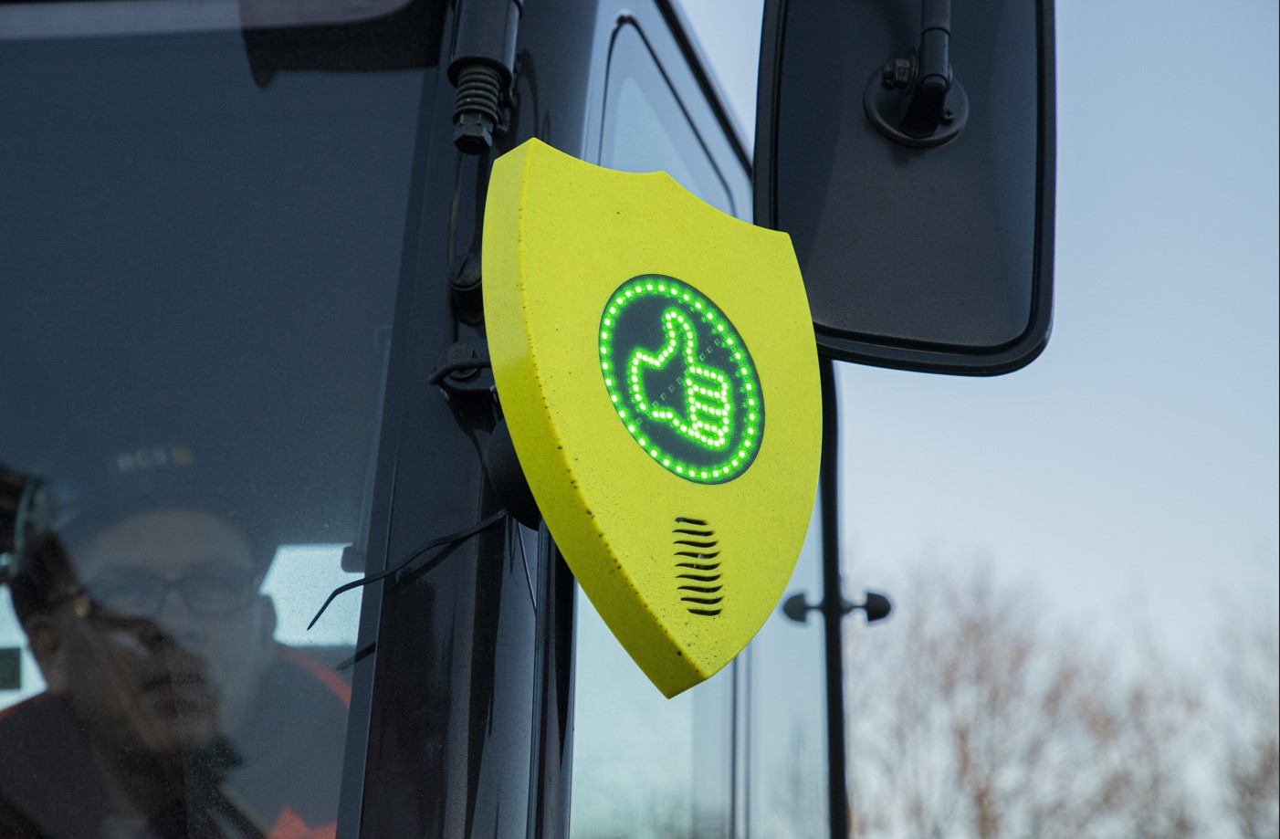The 'digital thumbs-up' system combines visual and audible signals to let machine operators advise other people when it is safe to approach them.