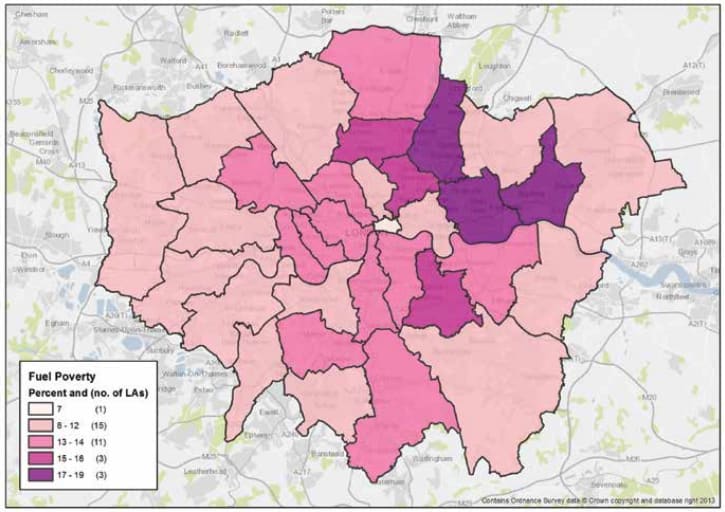 Figure 1: Distribution of fuel poverty in London Map based on BRE housing stock models and Experian data taken from the Cost of Poor Housing in London IHS BRE Press 2014