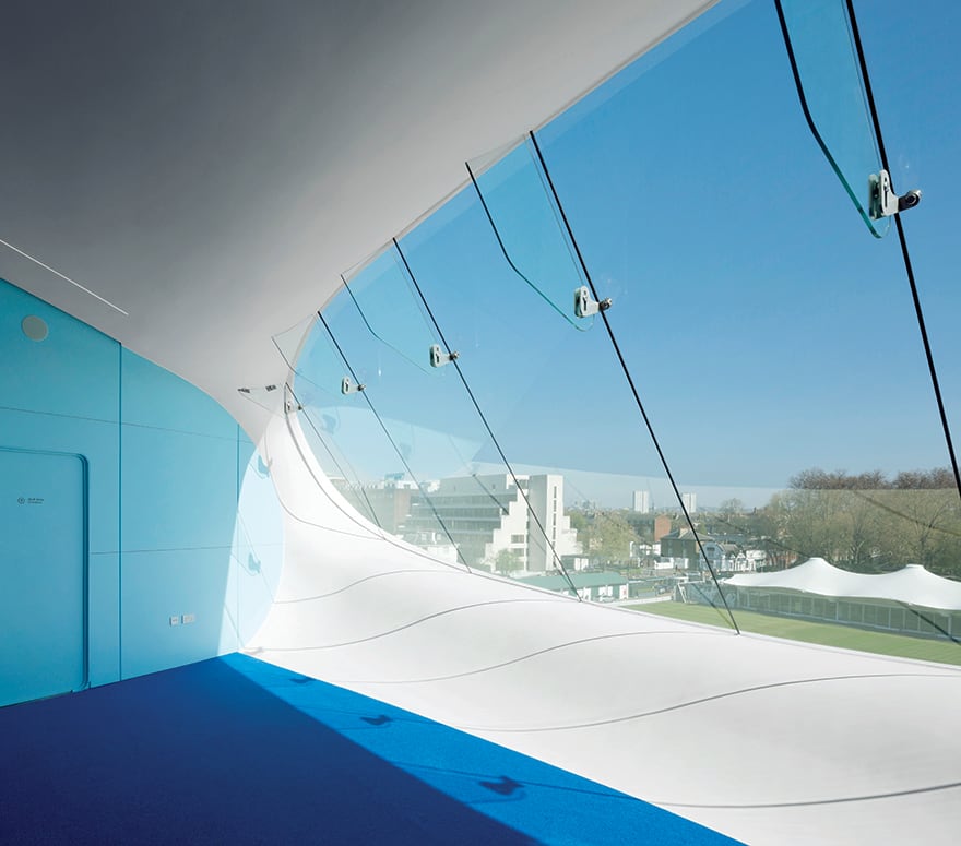 Designed in 1999 by architect Future Systems and engineered by Arup, the JP Morgan Media Centre at Lord’s cricket ground won the RIBA Stirling Prize in the year it opened. The first all-aluminium, semi-monocoque building in the world, it was built and fitted out in two boatyards, using boatbuilding technology, which was revolutionary at the time. This impressive structure stands 15m above the ground and is solely supported by its two lift shafts.