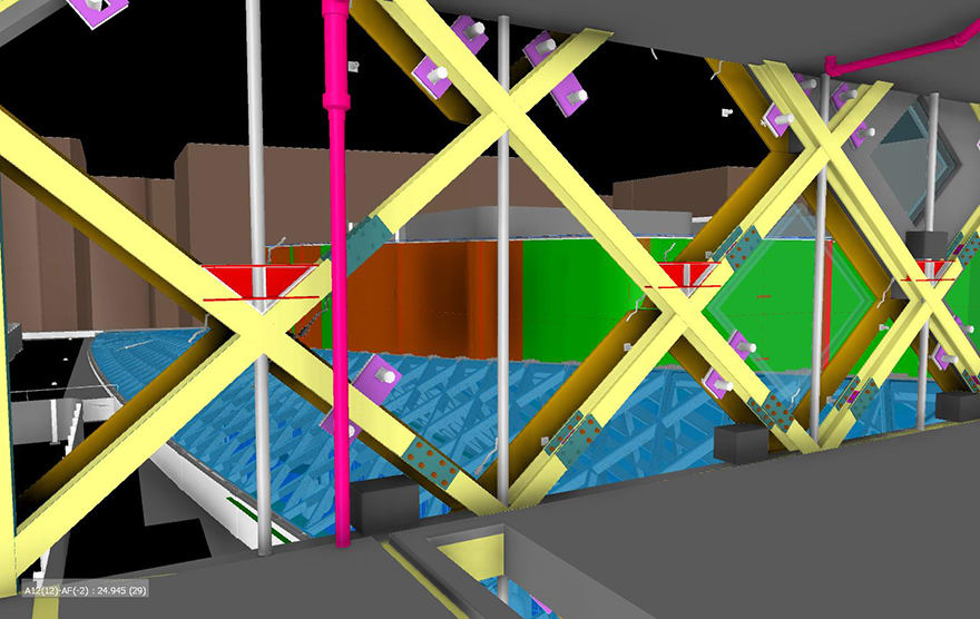 BIM Technologies, a division of Space Group, was BIM coordinator for the scheme, responsible for the facade, steelwork, MEP and civils, as well as managing standards such as the BIM Execution Plan, model audits and coordination of the federated model in Navisworks.