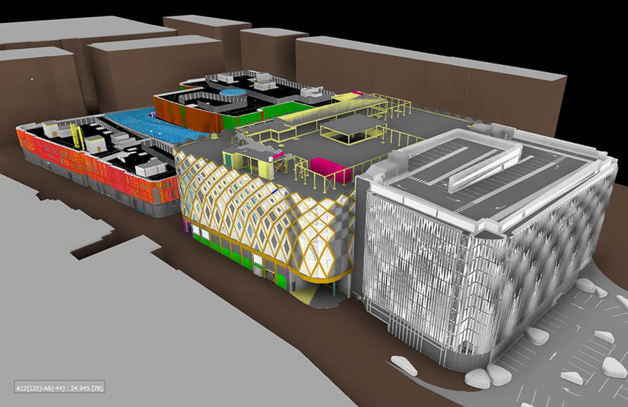 Hammerson had made no requirement for 3D BIM as a deliverable, but Sir Robert McAlpine decided to include it as part of its delivery submission to improve coordination of the largely offsite fabricated buildings.