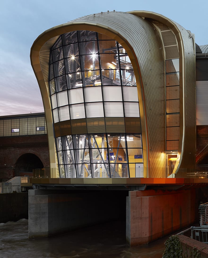 Due to limited space, and the need to access the existing high-level concourse, it was determined that this new entrance would be built above the River Aire.