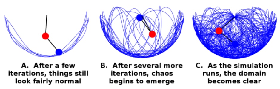 With hundreds of BIM enthusiasts and detractors piling energy into the system, the only mathematical outcome is that all of the current standards and processes will be ripped clause from clause until they can be broken down no further and a new and balance found. The chaotic pendulum shows how adding a simple new component to a balanced system creates chaos.