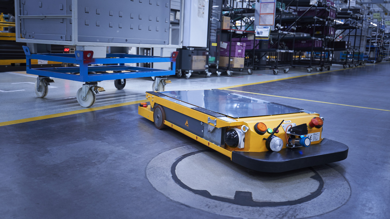 One of BMW's smart transport robots, originally designed to move equipment around a factory, but now set to be configured to scan and keep digital master data up to date (Image: BMW)