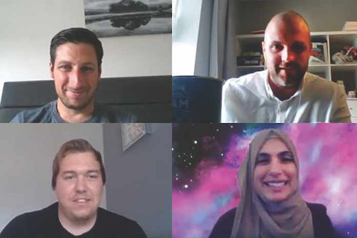 Clockwise from top left: Dibaj, Stockdill, Noor and Boyes at the Teams presentation