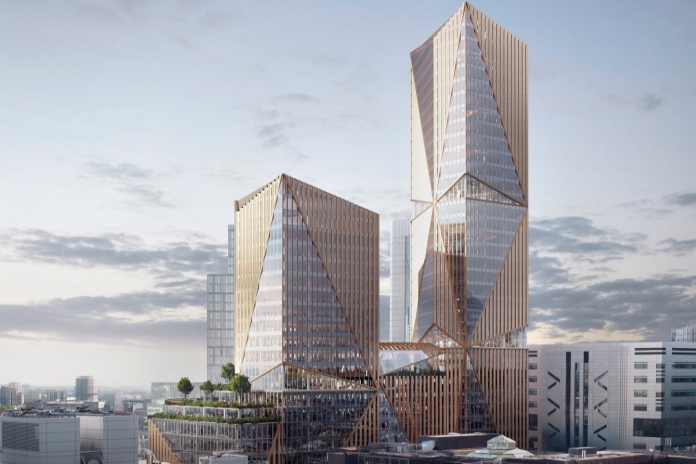 The development will be made of three elements: a 13-storey ‘podium’, a 22-storey west tower, and the 37-storey east tower. The maximum height of the west tower will be 115m, and the east tower will be 170m.