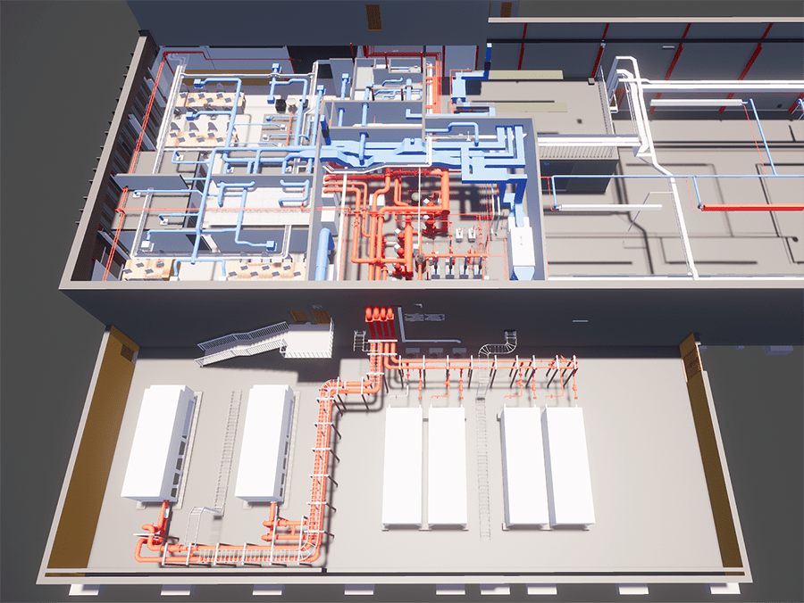 BIM was considered critical to the project due to the large amount of offsite manufacturing, particularly M&E systems, such as hot rolled pipeworks (spoils), cassette units with pipework and cable trays and chillers. NG Bailey refined the consultant’s design to include the procured components before the systems went into production.