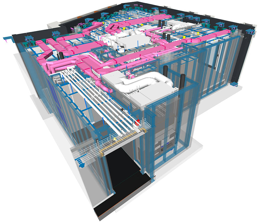 The virtual mock-up was developed to LOD350/LOD400, including all MEP services, and went beyond traditional “hard clash” detection to identify several “soft clashes” such as door swings and the impact of switching out replaceable equipment, such as filters.