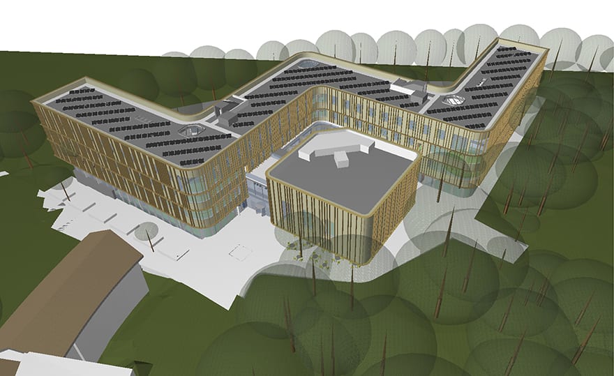 “All the trees in the model were sized correctly and we made adjustments to the building to snake in between the trees, to minimise the impact on the landscape.