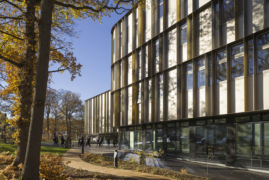 A striking “W”-shaped building nestled in ancient woodland, the University of Kent’s Sibson Building was designed to encourage collaboration and communication, bringing together Kent Business School and the School of Mathematics, Statistics and Actuarial Science.