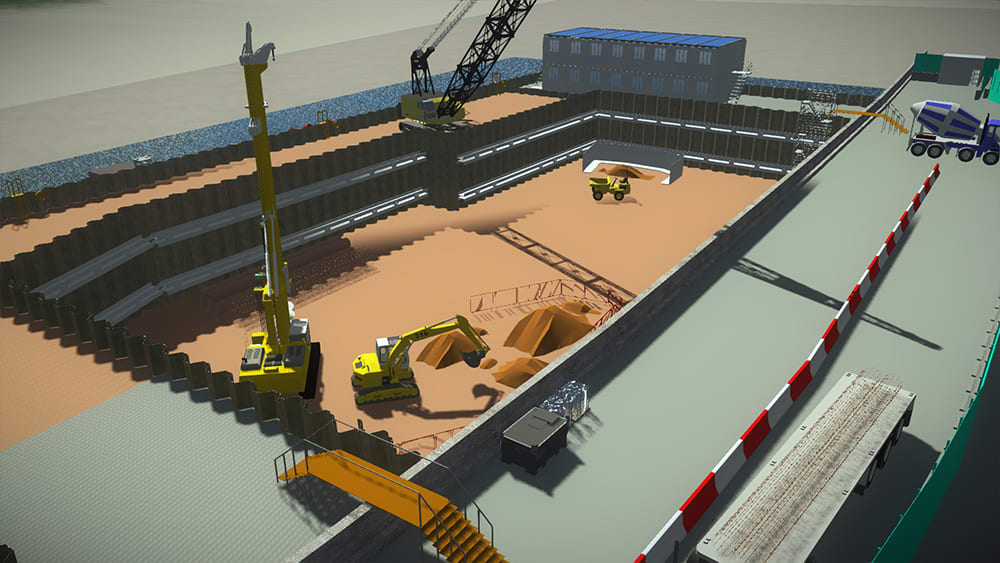 All sites have an up-to-date digital 3D “construction model”. These models consist of the permanent and temporary works designs, surrounding context, site compounds and other key site constraints. Having a digital 3D replica, the site teams are upskilled to navigate through and access the information within these models. The models are further developed to run project scenarios and construction sequences, and optioneering including plant movements and safe working zones.