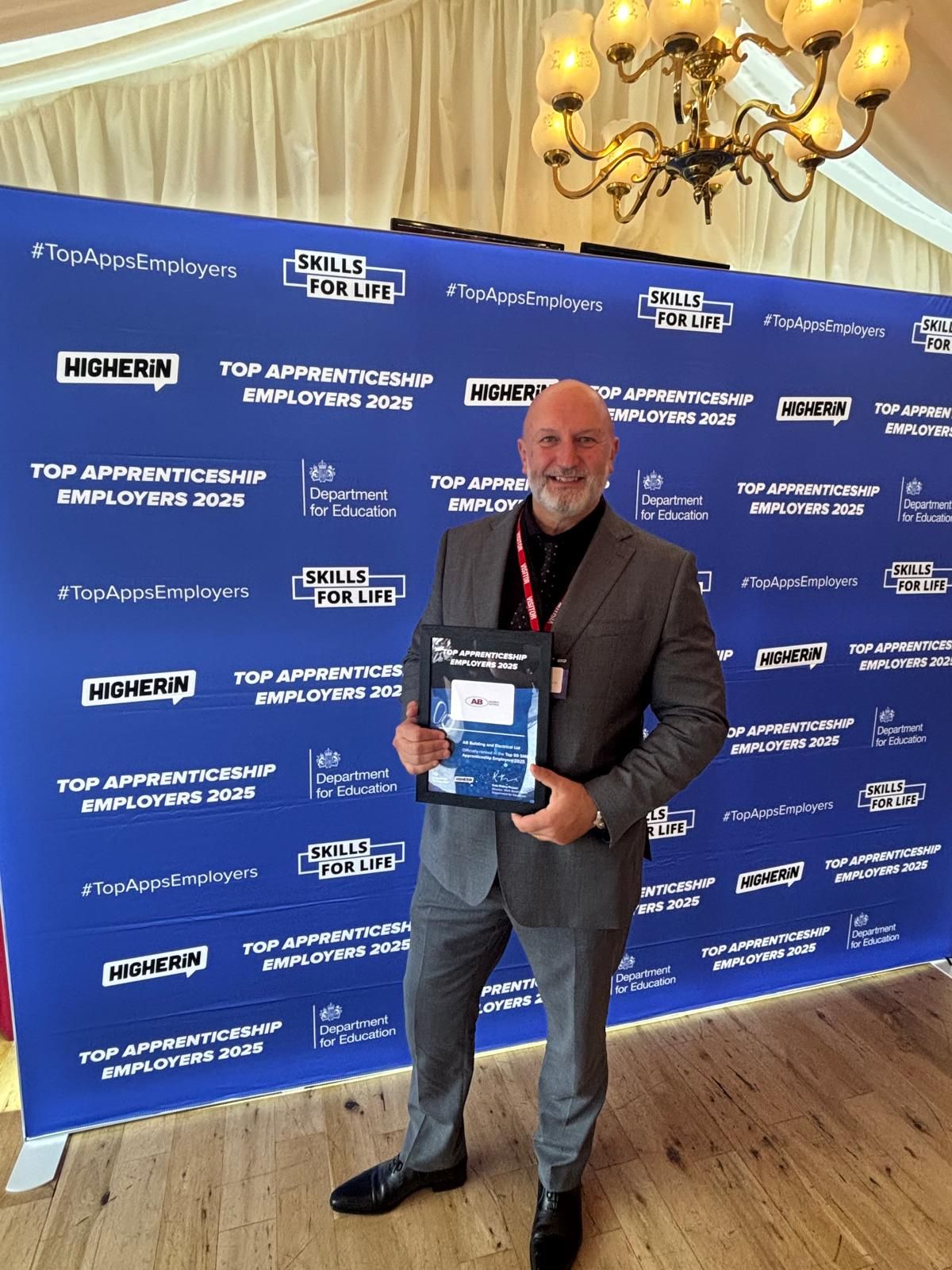 Chartered Company AB Building & Electrical has been named one of the UK’s top 50 apprentice employers by the Department of Education.