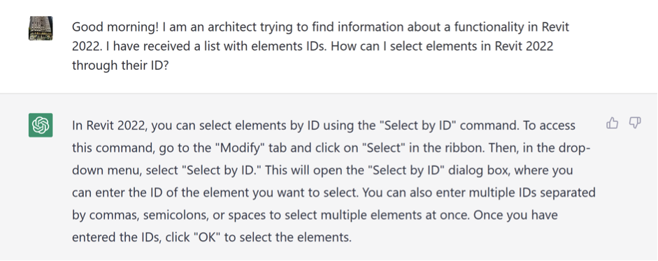 Chat GPT can give good responses to just about any question. Thus reducing the need to spend hours on Google or reading through pages and pages of old discussions in forums. Below is an example of the response I received when I forwarded some of my BIM-related questions to ChatGPT: