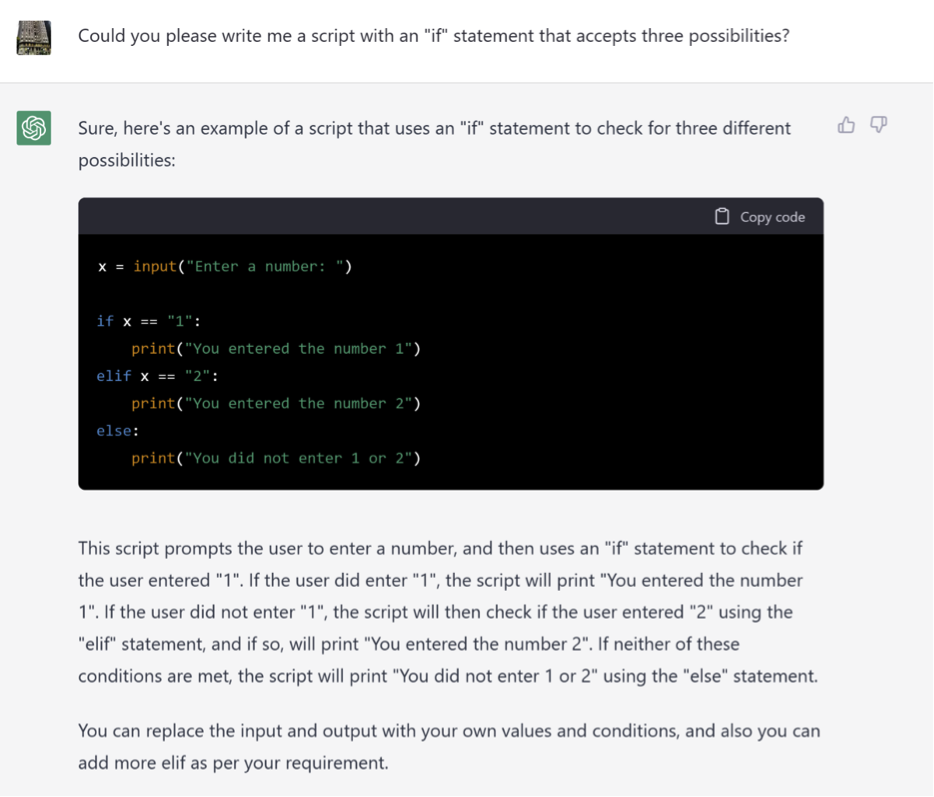 This works for Excel formulas, Python codes, C#, visual programming, you name it – ChatGPT is capable of providing a fairly good code. The question is whether we can provide ChatGPT with a good enough description for it to produce the code we need. That is not always an easy task.