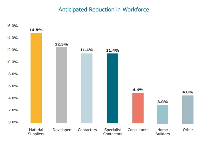 Construction firms predict that they will reduce their directly employed workforce by an average of 7.7% by September.