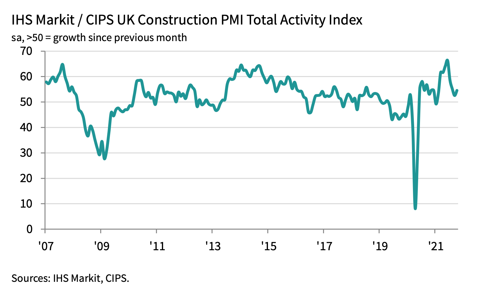 The headline HIS Markit/CIPS UK Construction PMI Total Activity Index registered 54.6 in October, up from 52.6 in September (where 50.0 indicates no change), to signal a rise in output volumes. The index has now posted a score above 50.0 for the last nine months, reaching a high of 66.3 in June.