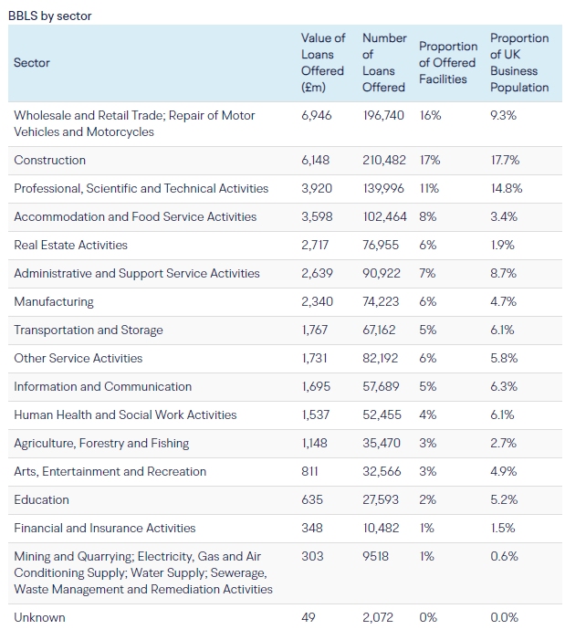 The construction industry took more loans under the government’s coronavirus Bounce Back Loans Scheme (BBLS) than any other sector, figures have shown.