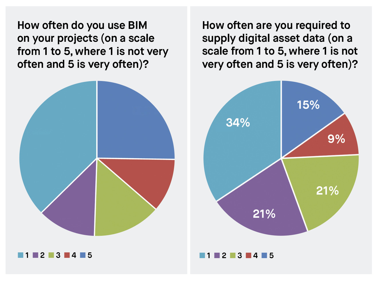 In contrast, one FM client told us: “All we want [is] asset data, but seemingly that attracts a huge bill from the supply chain for the privilege of being passed our own data. Sorry to seem very cynical, but that is why BIM is not gaining traction with clients.”