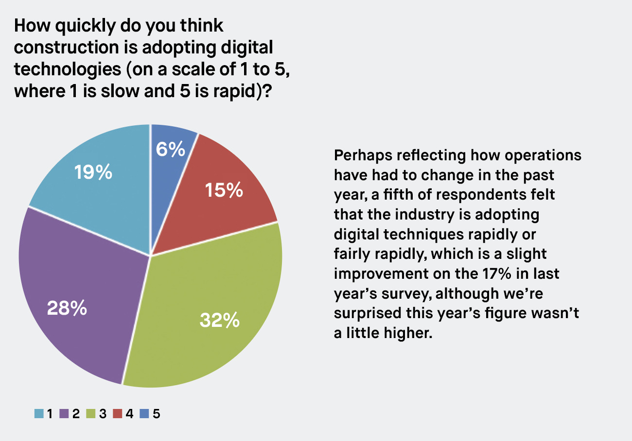 The year of working remotely has led to greater adoption of digital technologies, but not as quickly as might have been expected, as the annual CM and BIMplus survey demonstrates