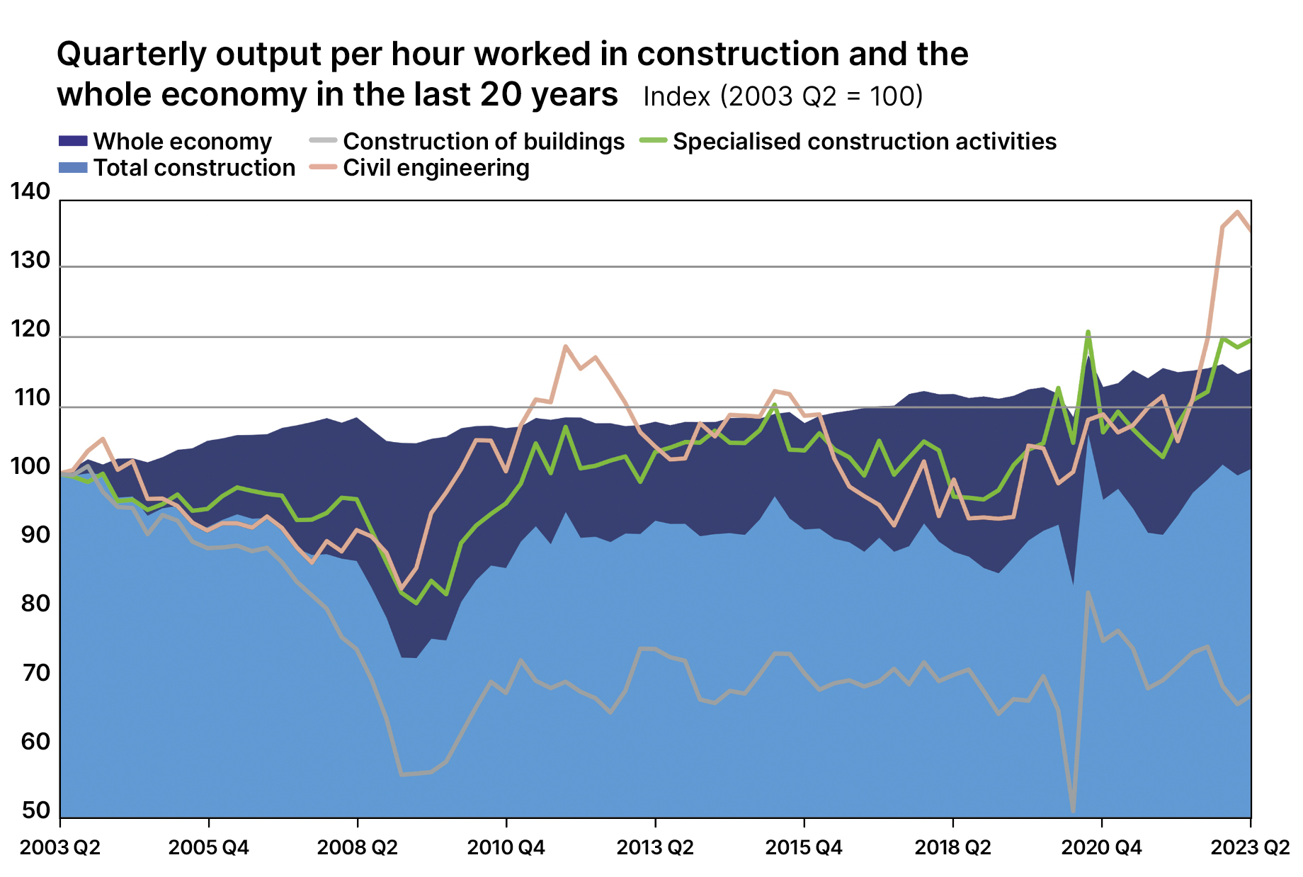 Many sectors within construction, especially civil engineering and specialised construction activities, have benefited from strong pipelines of work fuelled by government schemes.