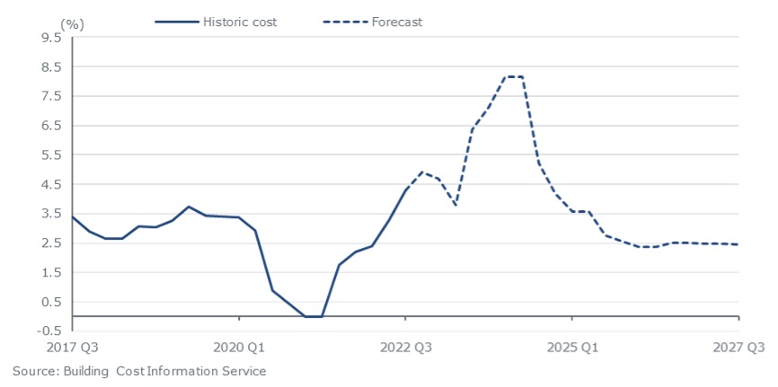 The Royal Institute of Chartered Surveyors’ Building Cost Information Service suggest that quarter on year labour costs may increase by up to 8.4 percent in 2024 (Figure 3).