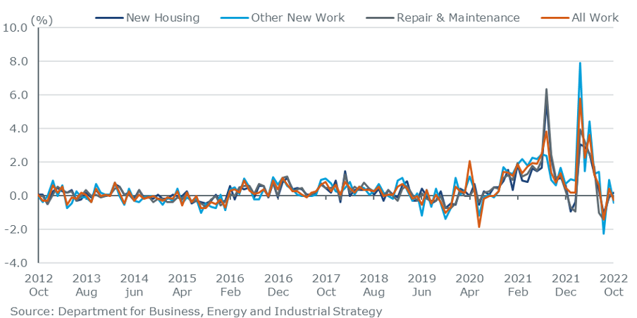 Figure 2: BEIS construction materials price indices performance, most recent ten-year period – month on month change
