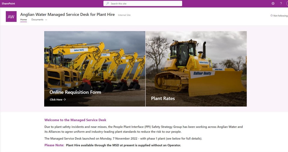 People-operated plant managed service desk | Aecom with Anglian Water and Balfour Beatty