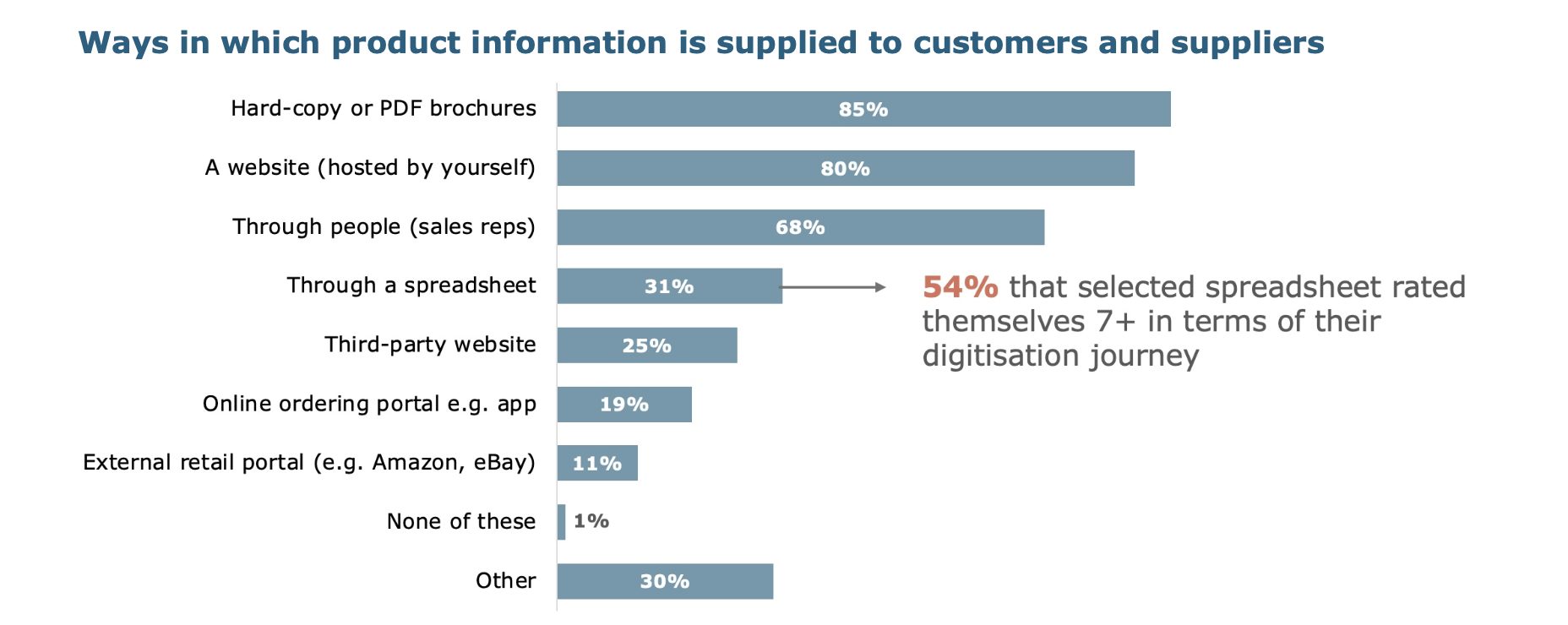Nearly a third (31%) said they supply information via a spreadsheet. Highlighting the lack of awareness of digitisation, more than half that said they share information via spreadsheets rated themselves highly in their digital journey.