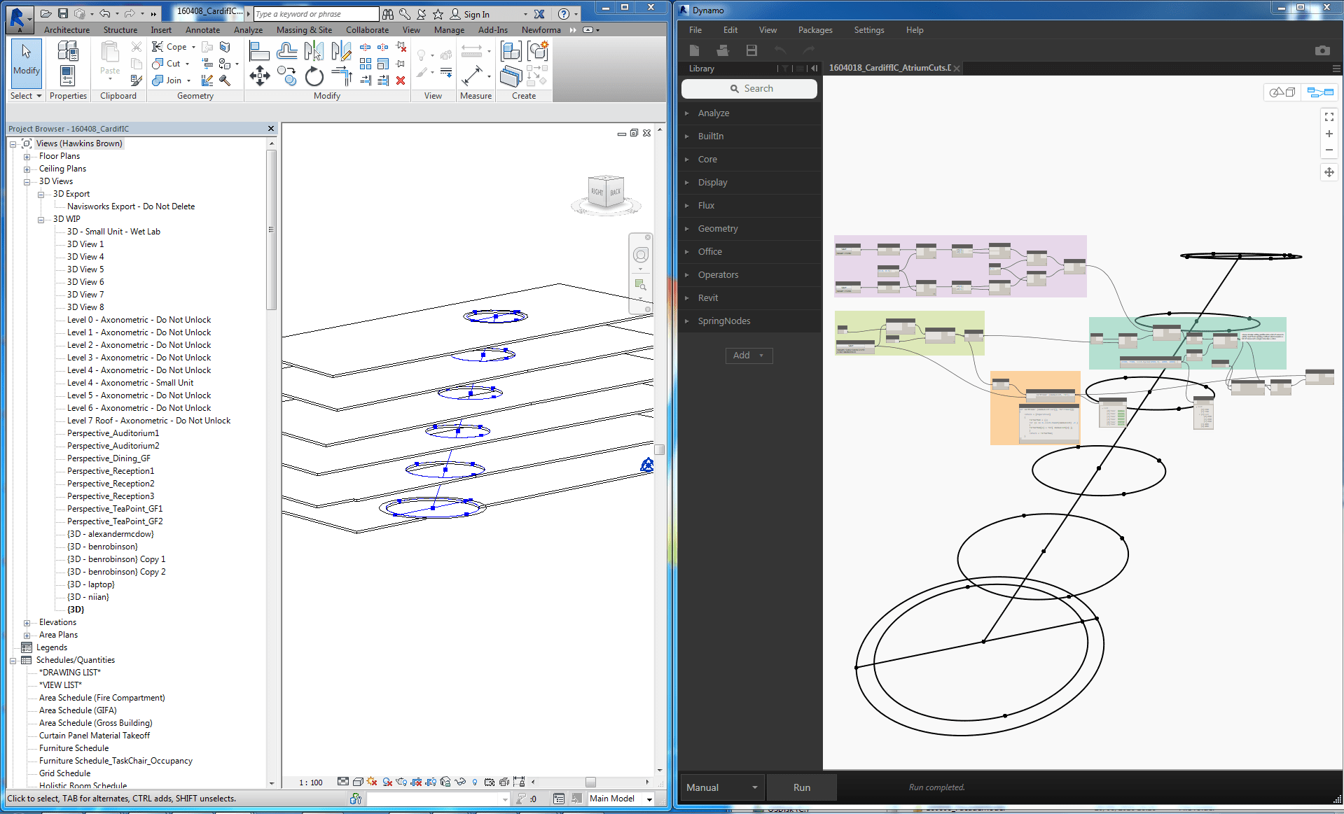 Dynamo was linked to Revit to cut the slanted atrium through the floor plates