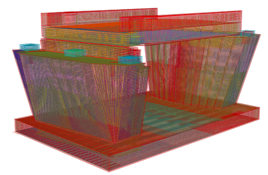 For example, there are precast elements supported on insitu concrete, which in turn support further insitu concrete panels, as well as the instances where structural steelwork is embedded in the concrete. Those three key suppliers have a number of geometrically complex interfaces.