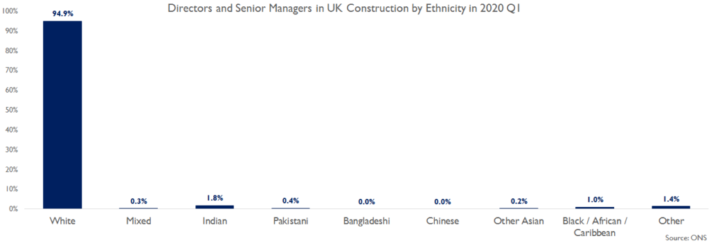 The number of directors and senior managers from Chinese and Bangladeshi groups were so small that they registered as 0% in the Office for National Statistics employment data, highlighted by Construction Products Association (CPA) economics director Noble Francis.