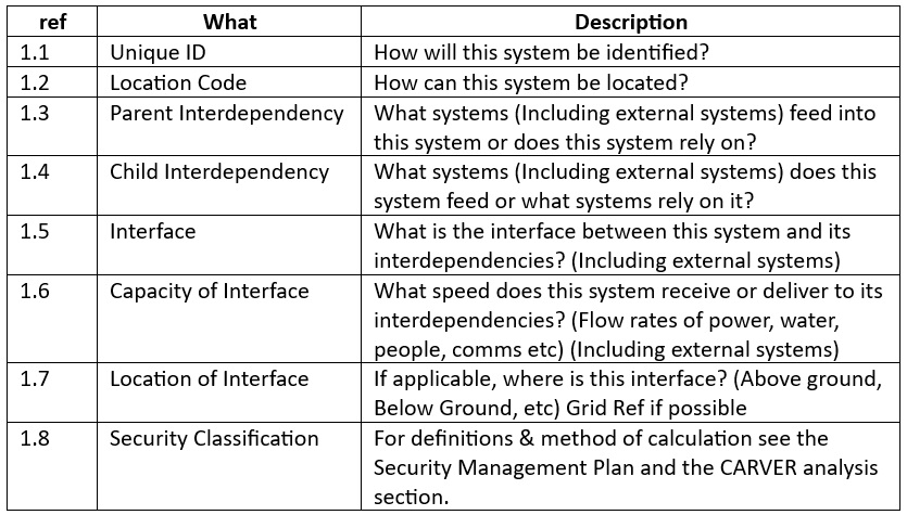 Finally, this information can be pushed into a CARVER analysis to define the security classification of the system in question, plus the information that goes with it. For example:
