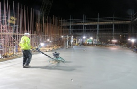 Last week, Graham undertook the biggest concrete pour of the project so far, working for nine hours to lay the floor slab in the crane maintenance bay (CMB) on the first floor of the building. A total of 27 lorries delivered 425 tonnes of concrete. An overnight shift completed the job in the early hours of the morning.