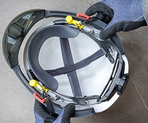 The accessory is fitted with a suspension mechanism and fits inside the hard hat