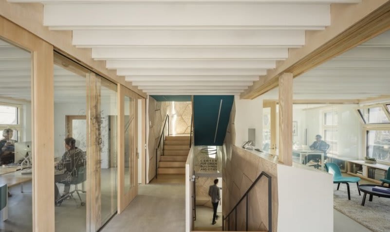 The CGBC’s pre-1940s headquarters in Cambridge, Massachusetts, was retrofitted to become a “living laboratory and an energy-positive prototype for ultra-efficiency”, according to Snøhetta.