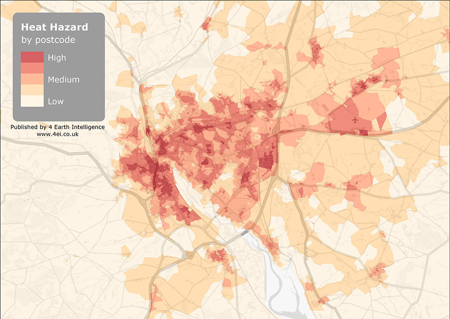 Derived from satellite imagery and created using automated algorithms, the data identifies hot spots within urban areas where temperatures are generally higher, forming an “urban heat island”. With the summer of 2020 already being predicted as one of the hottest on record, it is feared that this could severely impact on already stretched public resources. It is estimated that the heatwaves of 2019 led to almost 900 extra deaths in England and if the lockdown remains, it is possible the figures for 2020 could be higher.
