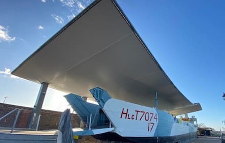 Hillcrest Structural, the specialist steelwork contractor, was appointed by Ascia Construction to produce a fully-coordinated 3D model of the primary steelwork canopy structure, design and detail the steel-to-steel connections, and fabricate and erect the new roof structure directly over the proposed resting position of LCT 7074.
