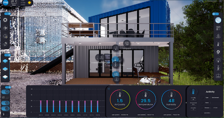 Having a GPS coordinate sensor means that if you have a mobile piece of equipment, you can geotag it and know if it’s been removed. Or, if something happens within the building out of hours or when people are off site, this will be visible on the digital twin, meaning that changes can then be made in the physical building via the user interface on the digital twin.