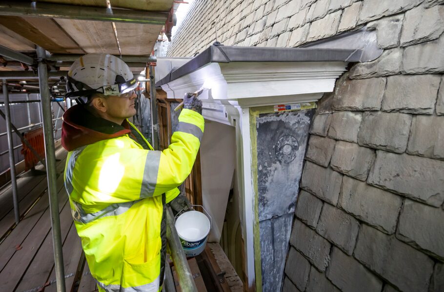 Before the project started, ASWS did an extensive internal survey, viewing from street level with binoculars, then closely inspected via scaffolding, which was installed in the summer of 2023 (Image: ASWS)