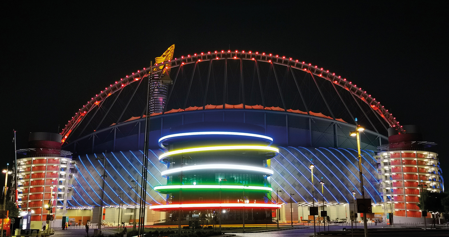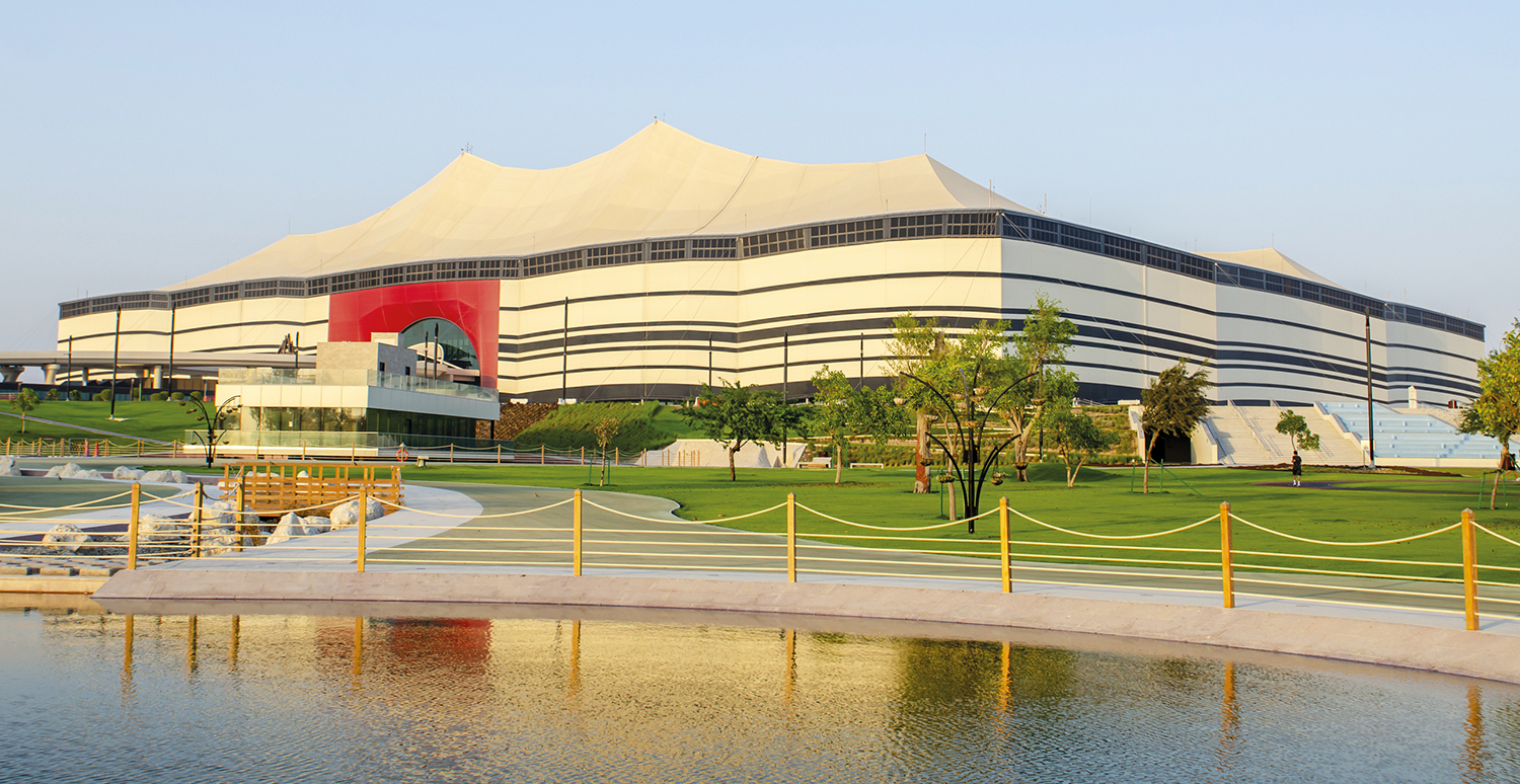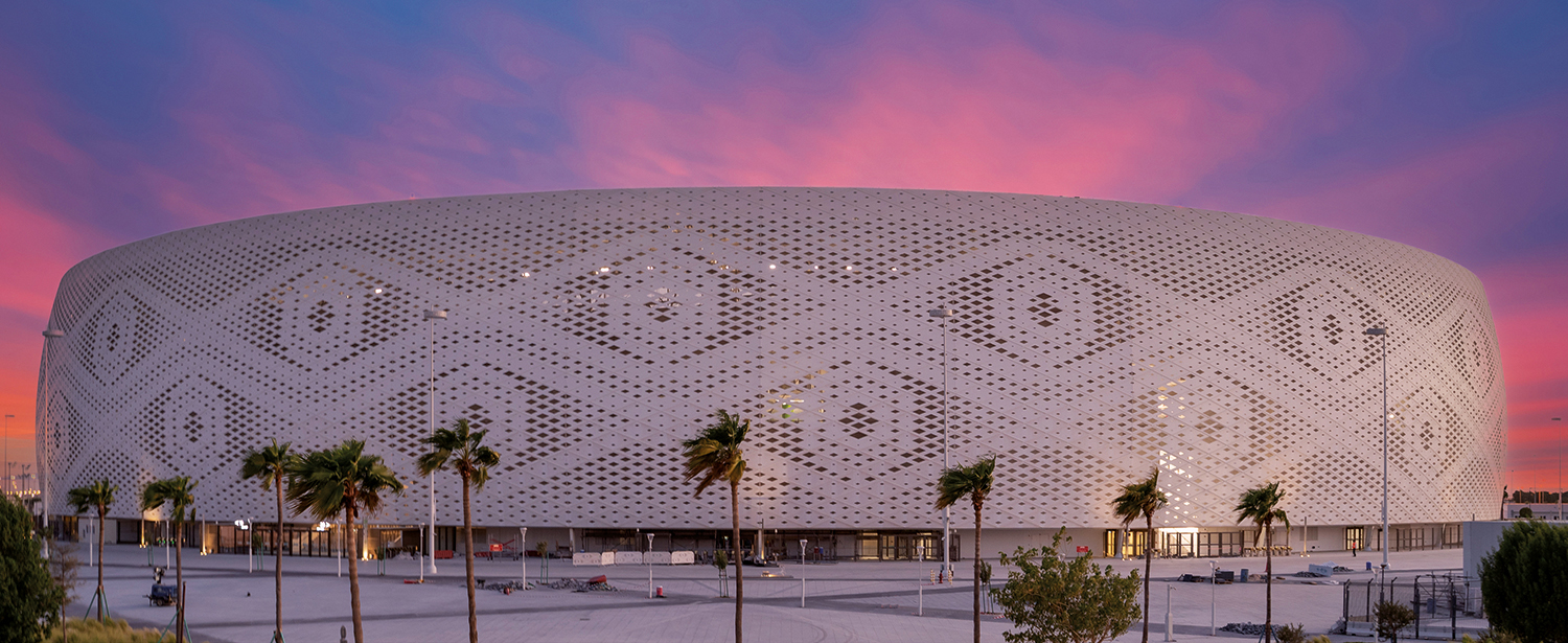The World Cup’s second largest venue accommodates 60,000 fans. The design, by consultant Dar Al-Handasah, is inspired by the traditional tents of Qatar’s nomadic peoples and features a retractable roof.