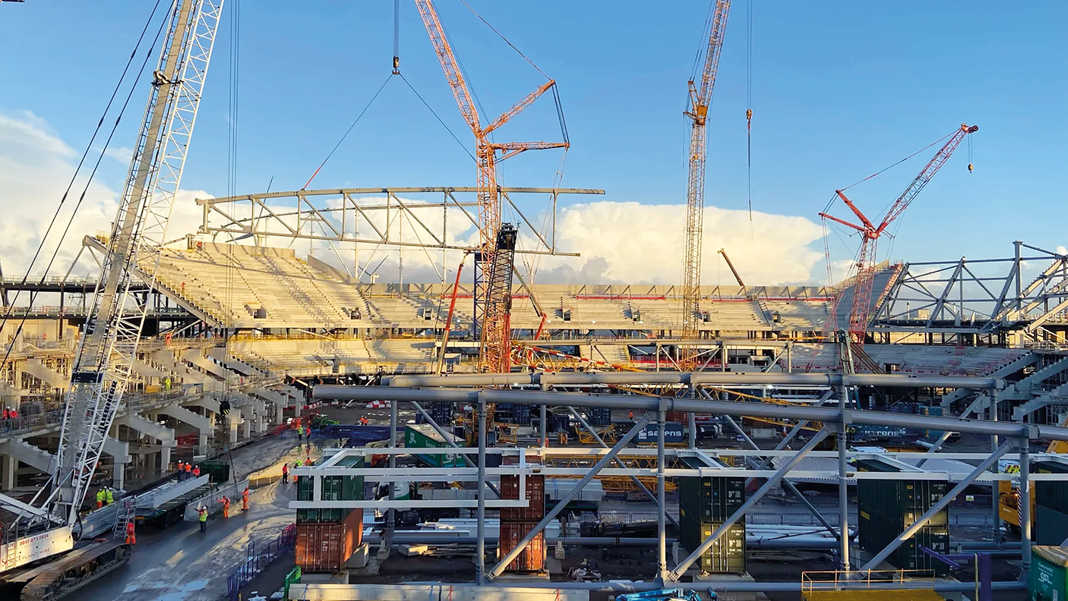 The stadium will have five roof trusses. Two are in the smaller north stand and three are on top of the one-tier south stand.