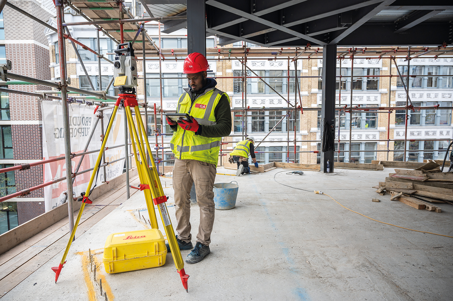 Gilbert-Ash site manager Mohamed Dhallin at work at the site of a former NCP car park in London’s Farringdon, which is being converted into a Hub by Premier Inn.